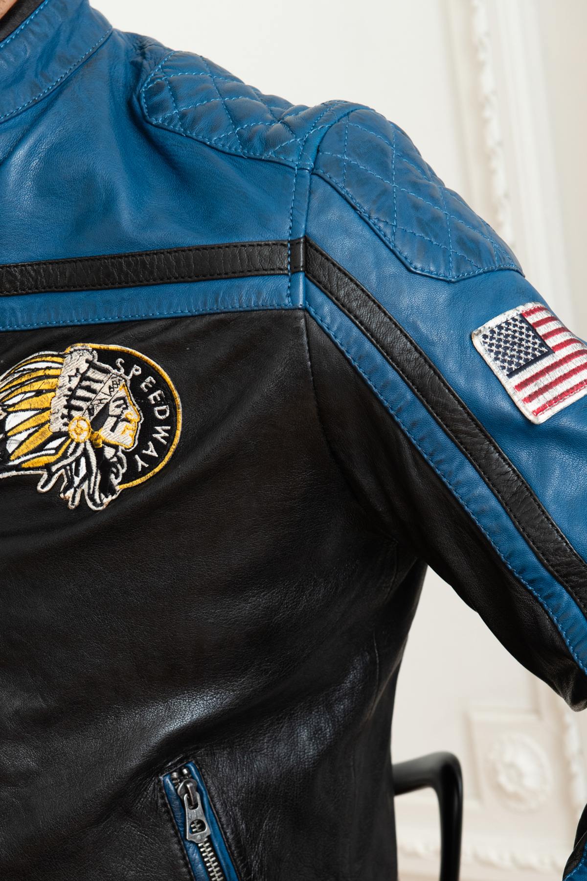 Bikers in the soul will find what they are looking for with this model. Sheepskin leather has a beautiful patina, with a slight shine that we love in quality leather. The biker collar offers a classic snap closure. It is supported by a robust and contrasting central zip. A chest pocket and 2 lower pockets are included in this jacket full of character. The long sleeves are marked with contrasting bands which enhance a chic and rebellious design. The patches distributed across the bust and arms, as well as the quilted inserts add a stylish side. mechanics wanted for this category of clothing. We also note a beautiful lining which incorporates additional pockets.