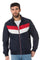 The CABL12ST NAVY is an enhanced navy windbreaker. 2 red and white stripes on the front of the model.