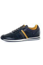Find the Living 2 Navy Yellow sneakers in the Redskins shoe collection. These men's cowhide leather shoes combine quality and comfort. This pair of men's sneakers is a round toe model with a rubber outsole marked with the brand name and a flat lace. The brand name is also featured on labels on the tongue and sides of these leather sneakers. This piece stands out with its contrasting color stitching and inserts on the sides. The play on material and color also makes it a stylish model. These leather sneakers will be perfect with an urban or casual outfit.