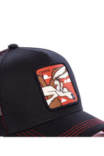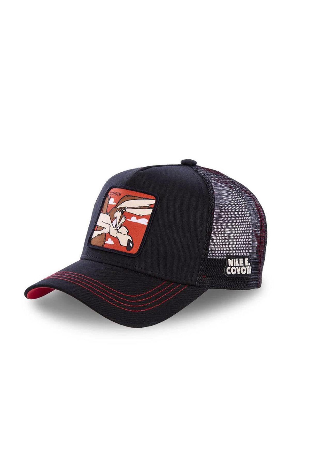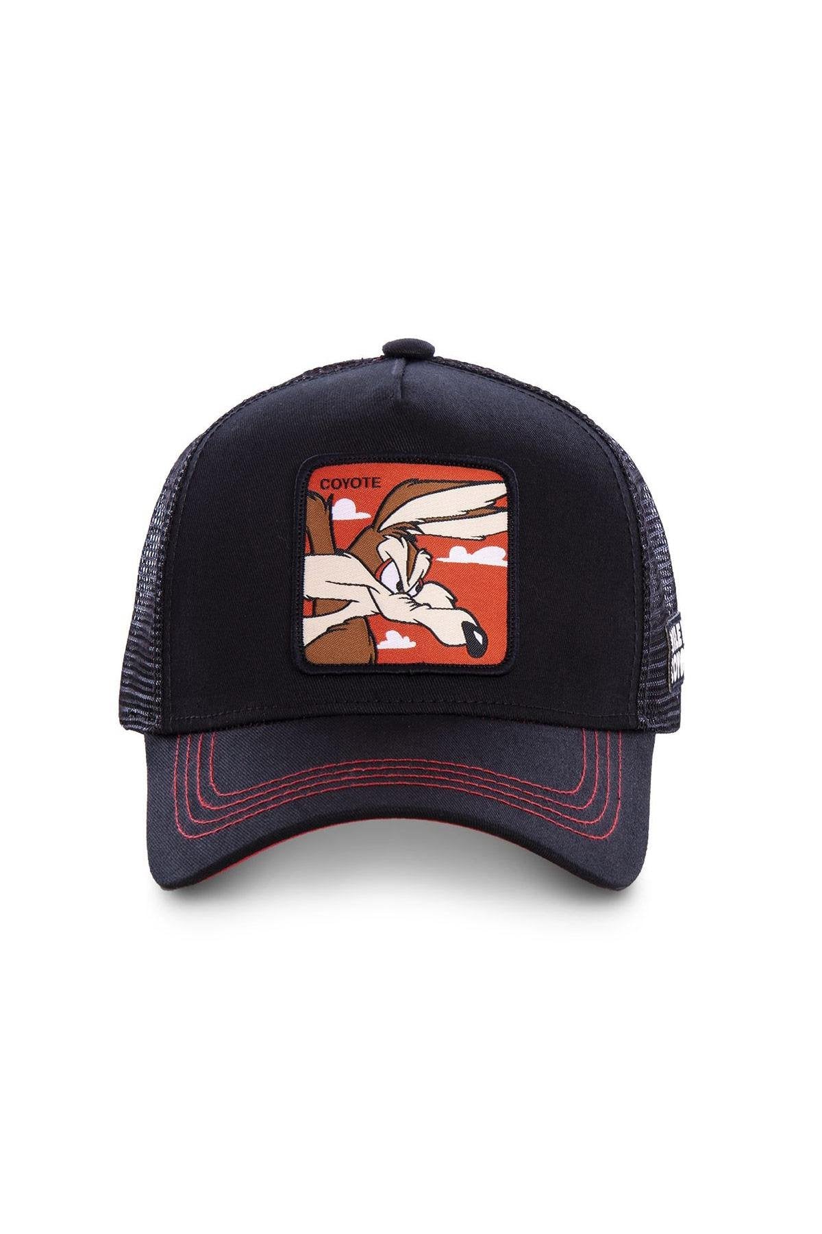 Its visor is curved like all baseball caps, while its crown is made of mesh and equipped with a snapback idea ;al to adjust the head circumference. The crown is embellished with the image of Coyote.
