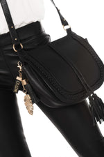 On the side there is a braid. a magnificent carabiner with a leather pompom, a gold-colored metal leaf and the brand logo decorated inside. This model is wonderful.