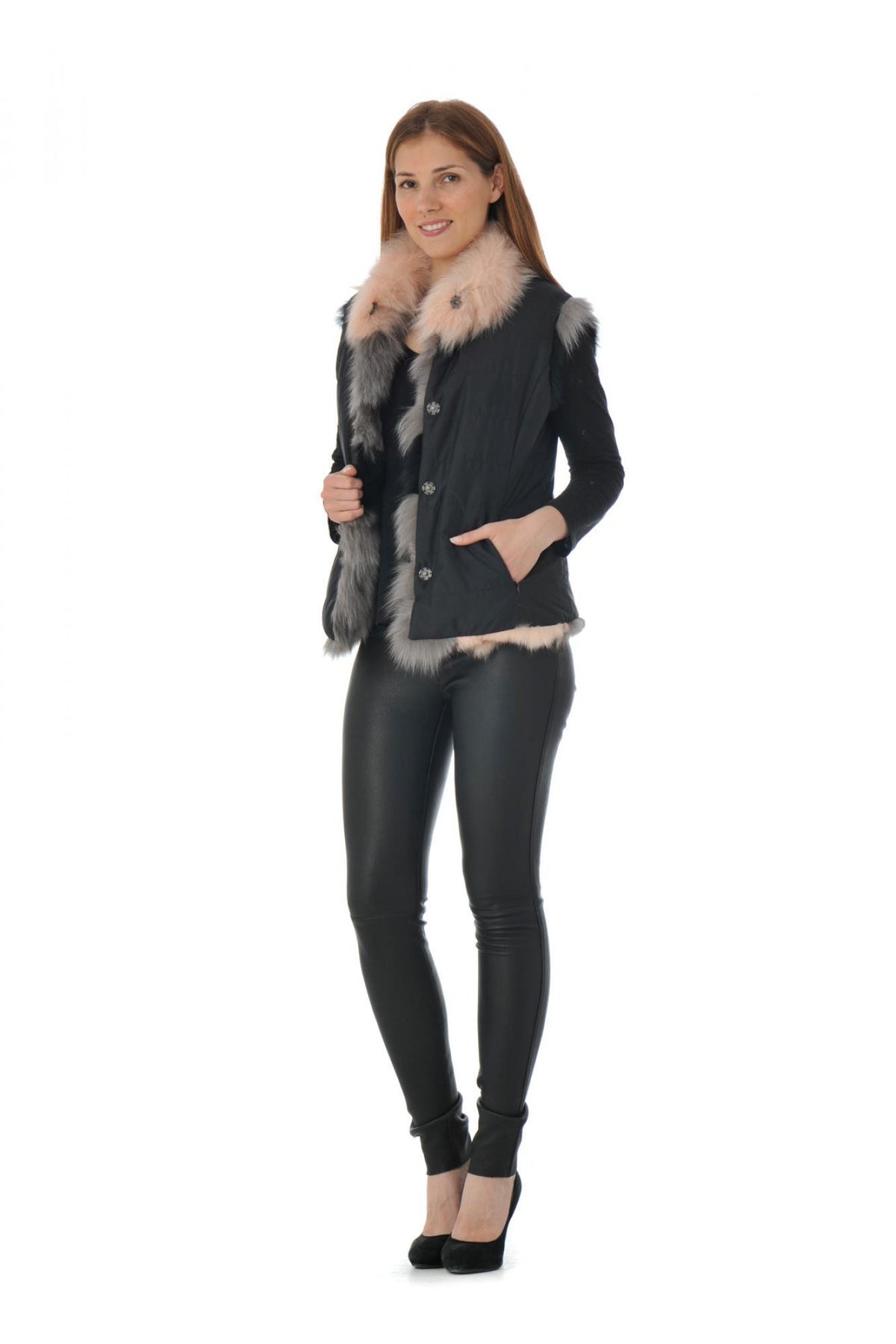 In black, beige and pink camouflage fox fur, this model is reversible with a second side in black polyester.