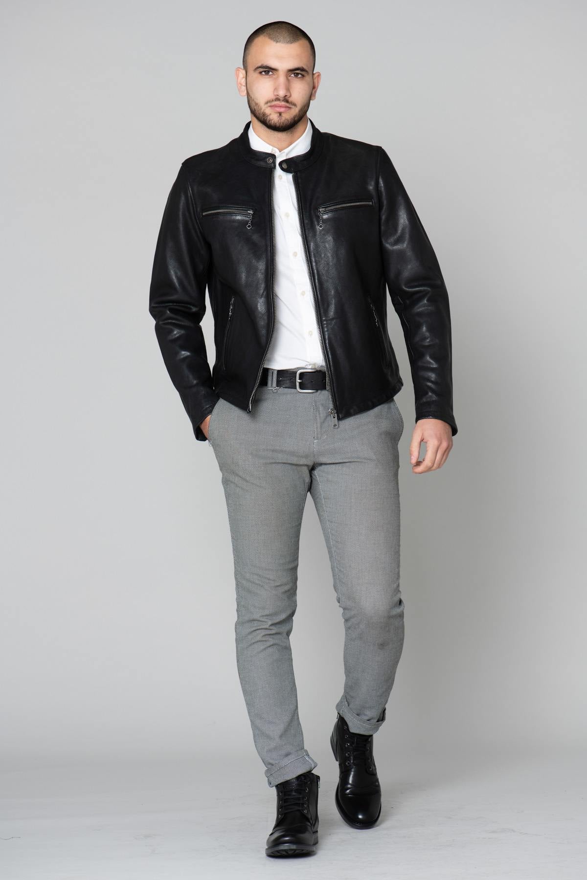 It is a close-fitting cut. The product will be fitted at the waist and the sleeves will be quite tight.<br><br> This type of jacket will be worn more easily open due to its fitted appearance.<br><br> The Slimfit cut is the most widespread among leather clothing, it is the fashionable cut!
