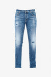 Everything is done to respect the standards of good jeans, a secure closing system. by a metal button and a metal zip, loops sewn on the waist and facilitating the insertion of a belt if necessary, the 4 pockets, two of which have front pockets. at the front and two at the front. the back and the small coin pocket. The little touch of originality of the brand is highlighted by the small white flocked spots çà and there as well as the destroyed effect.