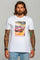 Its collar is round and its sleeves are short. The bust is flocked; of a printed form representing the poster for the 1961 racing car championship on the legendary Le Mans circuit. A colorful flocking, which contrasts with the white color of this t-shirt.