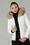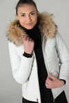 This entire women's jacket is quilted. with an innovative addition. A THINSULATE thermoregulatory fiber which ensures exceptional performance in terms of warmth and protection. The collar is dressed a hood with detachable raccoon fur. The closing system is easy to use. slide. The exterior is decorated with wood. 2 zipped pockets, while the lining includes 2 pockets, one of which is zipped and the other with a zipper. scratch. Elastomer fibers are provided to guarantee extensibility. and the outfit of the jacket.