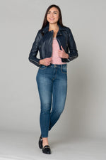 It is a close-fitting cut. The product will be fitted at the waist and the sleeves will be quite tight.<br><br> This type of jacket will be worn more easily open due to its fitted appearance.<br><br> The Slimfit cut is the most widespread among leather clothing, it is the fashionable cut!