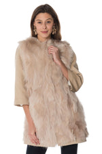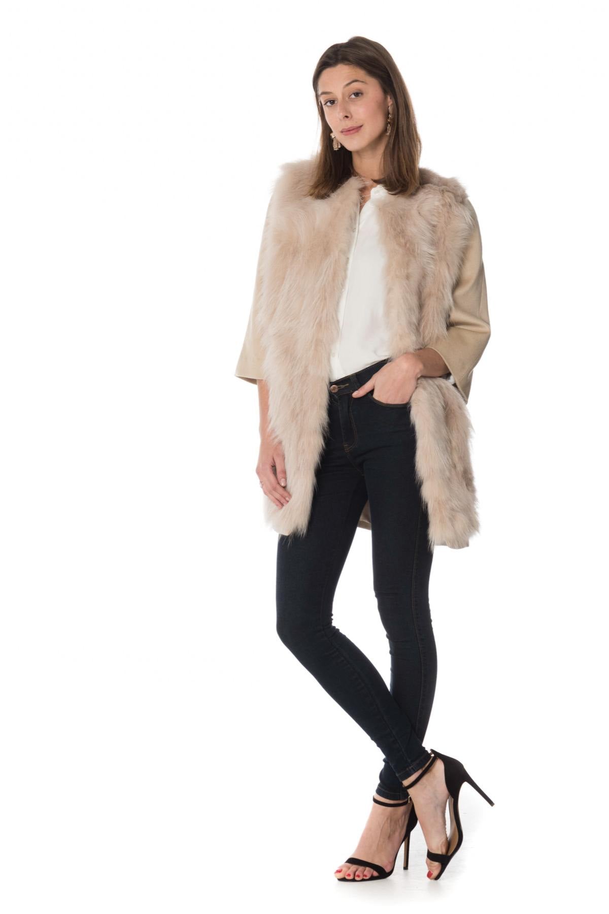 The 3/4 sleeves as well as the fur which adorns this model make it a very original jacket .