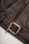 Aged brown Biker Jacket in full grain cowhide leather - Image n°2