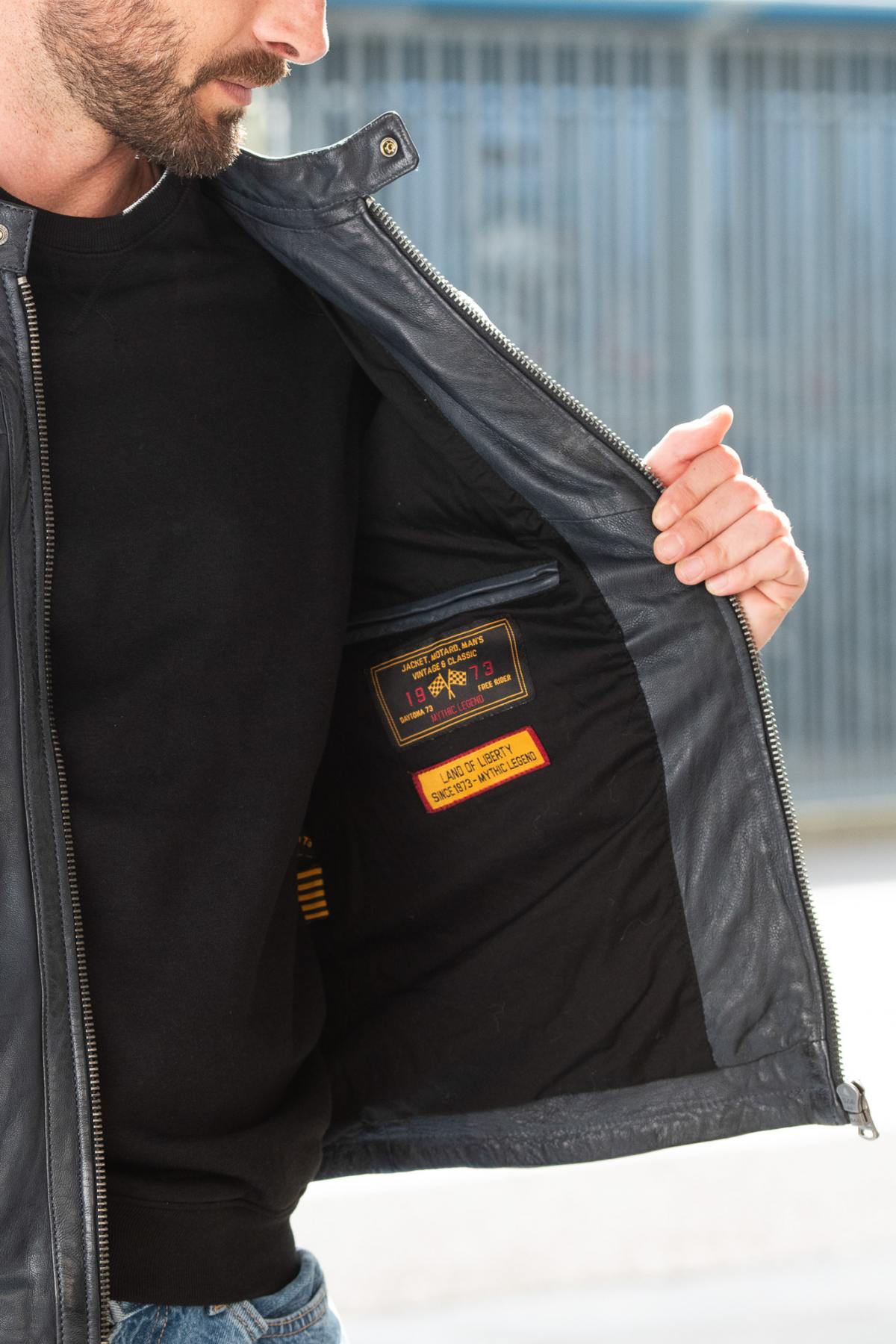 Tämä lampaannahkainen takki on täydellinen esimerkki korkealaatuisesta käsityötaidosta, ja kasviparkitus korostaa merkin sitoutumista ympäristöön. Sen säännöllinen leikkaus mukautuu kaikkiin vartalon muotoihin ja takaa samalla optimaalisen mukavuuden, ja sen tummansininen väri lisää ripauksen eleganssia mihin tahansa asuun. Siinä on painonapilla suljettava biker-kaulus ja vetoketjulliset hihat, joten siinä yhdistyvät tyyli ja käytännöllisyys. 4 ulkotaskua ja 3 sisätaskua, joista yksi vetoketjullinen, yksi neppareilla ja erityinen puhelimelle, tekevät tästä takista yhtä toimivan kuin houkuttelevankin. Sen puuvillavuori ja polyesterihihat takaavat paremman mukavuuden ja kestävyyden vaativimmissakin olosuhteissa.