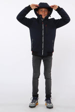 Vettä hylkivä untuvatakki, joka on ihanteellinen tälle talvelle, tässä on BAYER NAVY -malli KAPORAL -merkiltä.
