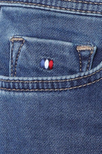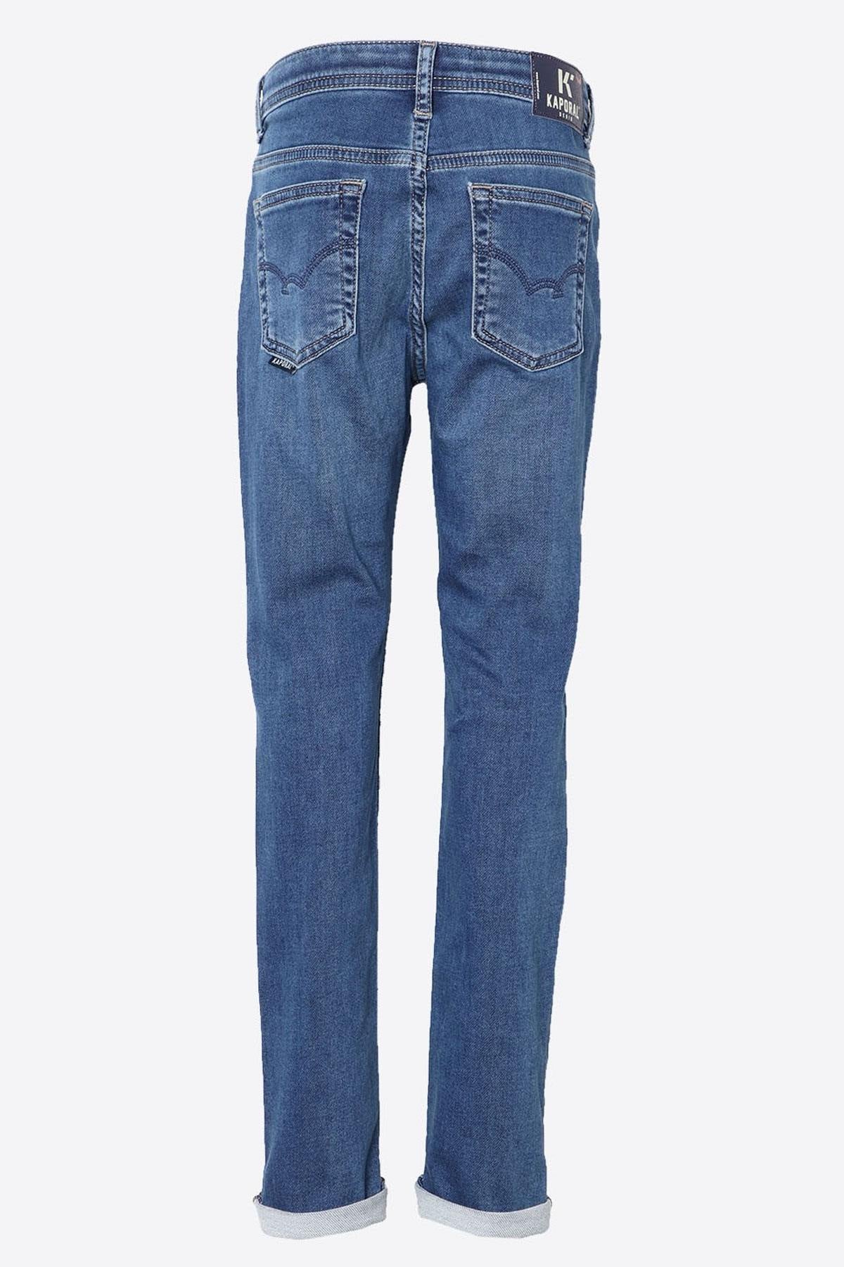 Todella sopiva Lapsille näissä farkuissa on suuret lenkit, jotka ovat ihanteellisia suuren vyön pukemiseen. Musta merkkitarra on ommeltu vyötärölle, ja Kaporalin K-symboli on koristeltu vyötärönauhalla. vetoketjullisessa nappikiinnikkeessä. Metallipainike, johon on painettu myös tuotemerkin nimi, varmistaa sulkemisen agravessa; edessä. Ompeleet ovat erittäin korostuneet, etenkin suurien takataskujen tasolla. takaosa. Edessä on kolme muuta taskua. edessä pieni mysteeritasku täynnä kolmivärinen lippu.