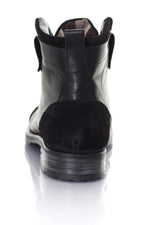 Ulkopuoli sileää nahkaa, koristeltu nubukkisisäkkeillä, jotka tarjoavat upean kontrastin.