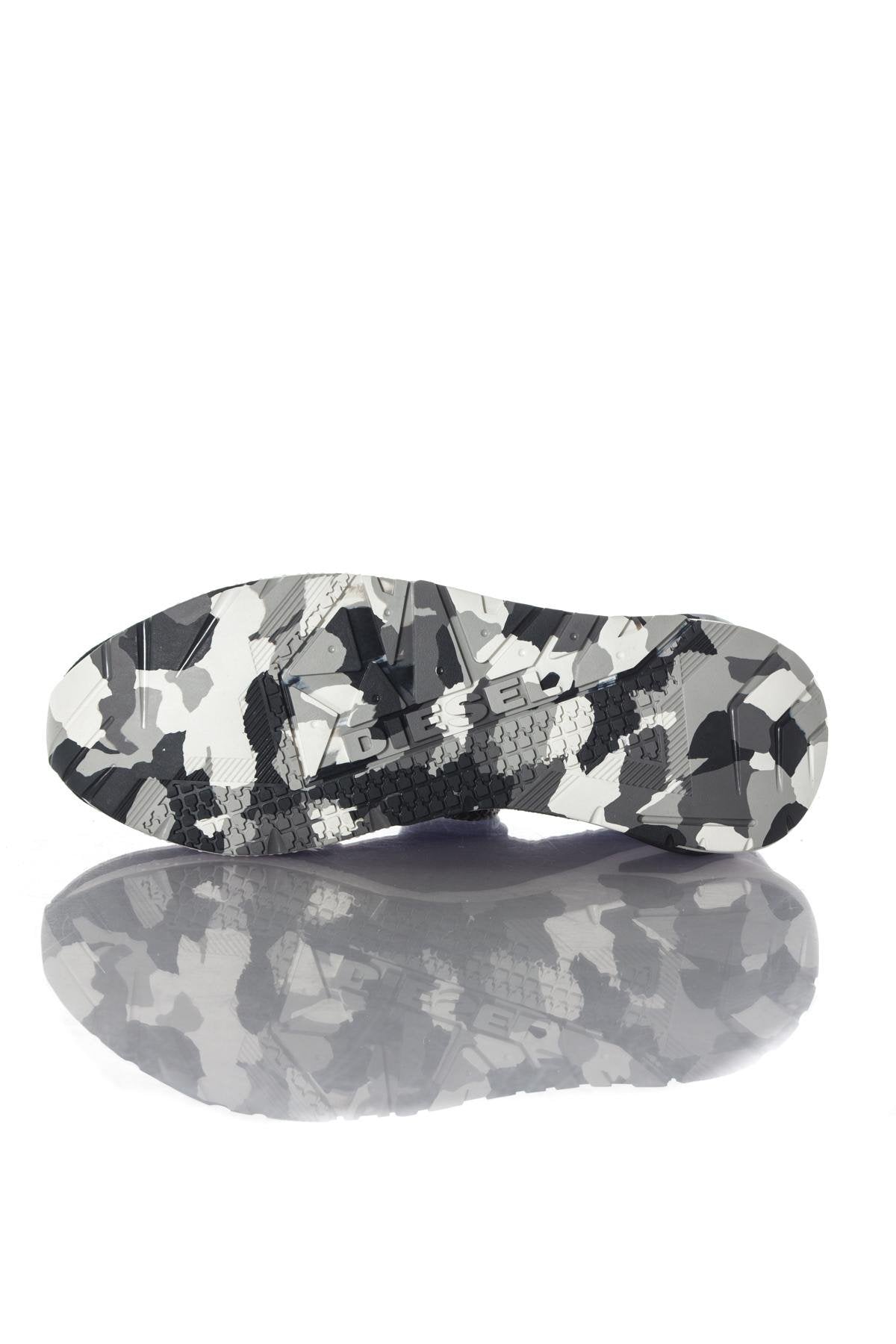 Pohjallinen. kangaspäällinen ja elastomeerinen ulkopohja painatuksella. naamiointi ja Diesel-kirjoitus.