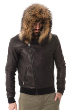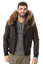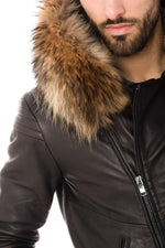 Kiinteä nahkainen huppu kiristysnyörillä koristeltu upealla pesukarhuturkiksella, joka irrotetaan neppareilla.