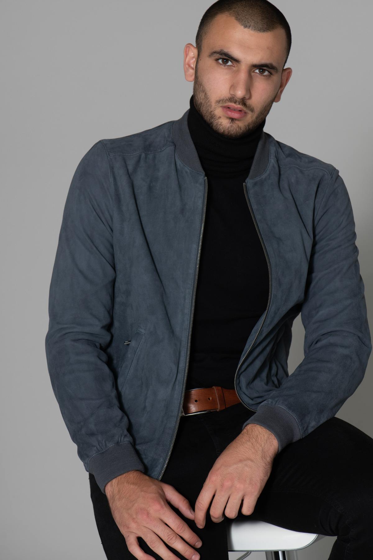 Sen nallekaulus sekä pitkien hihojen hihansuut ja vyötärö ovat räätälöityjä. uurretut reunat. Suljin on keskitetty ja vahvistaa tämän bomber-takin urheiluvaatteiden ilmettä. Nahan pinta on samettinen, mikä antaa vaatteillesi erittäin tyylikkään ilmeen. Tämä malli ja tekee materiaalista erittäin miellyttävän käyttää. kantaa. Alemmat sivutaskut näkyvät edestä. eteenpäin ja edistää käsien lämpöä. Arvostamme myös sisävuorauksen hienostuneisuutta ja sen sisältämiä lukuisia taskuja.