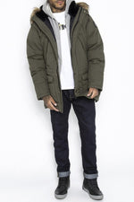 Tässä puhutaan parkasta, jossa on upea huppu, jossa on irrotettava synteettinen turkki. Sen khaki-väri on asetettu palauttamaan armeijan vaatekaappisi ilme! Se on varustettu parilla rintataskulla sekä kahdella alemmalla etutaskulla. painonapit läpät. Vuoraukseen on integroitu myös neppareilla varustetut taskut. Kokoa ja siluettiasi on mahdollista säätää mukana tulevan kiristysnyörin ansiosta. Sivusulku, kaksoisjärjestelmä on asennettu paikoilleen, keskellä vetoketju ja kieleke painonapeilla. Tämä järjestelmä yhdistettynä laadukkaaseen tikkaukseen tarjoaa mukavuutta ja lämpöä.