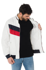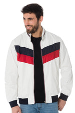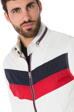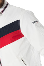 Tuulenpitävä takki CABL12ST OFF WHITE, kaksi sinistä ja punaista raitaa tuotteen edessä.