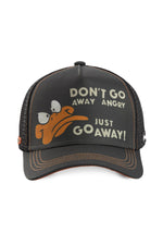Antrasiitinvärisessä lippassa on säädettävä klipsi takana. korkin takaosa. Näin voit säätää sitä pään koon mukaan. Paneelissa näemme Daffyn äreät kasvot ja viesti «Älä mene pois vihaisena, mene pois! ».