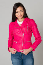Anna itsesi vietellä tämän Oakwoodin Camera Fushia 548 -takin kauneudesta. Se on tehty täydellisyyteen. Pohja leikattua lampaannahkaa erittäin onnistuneessa perfecto-mallissa.