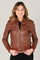Port-colored leather jacket with shirt collar - Image n°3