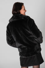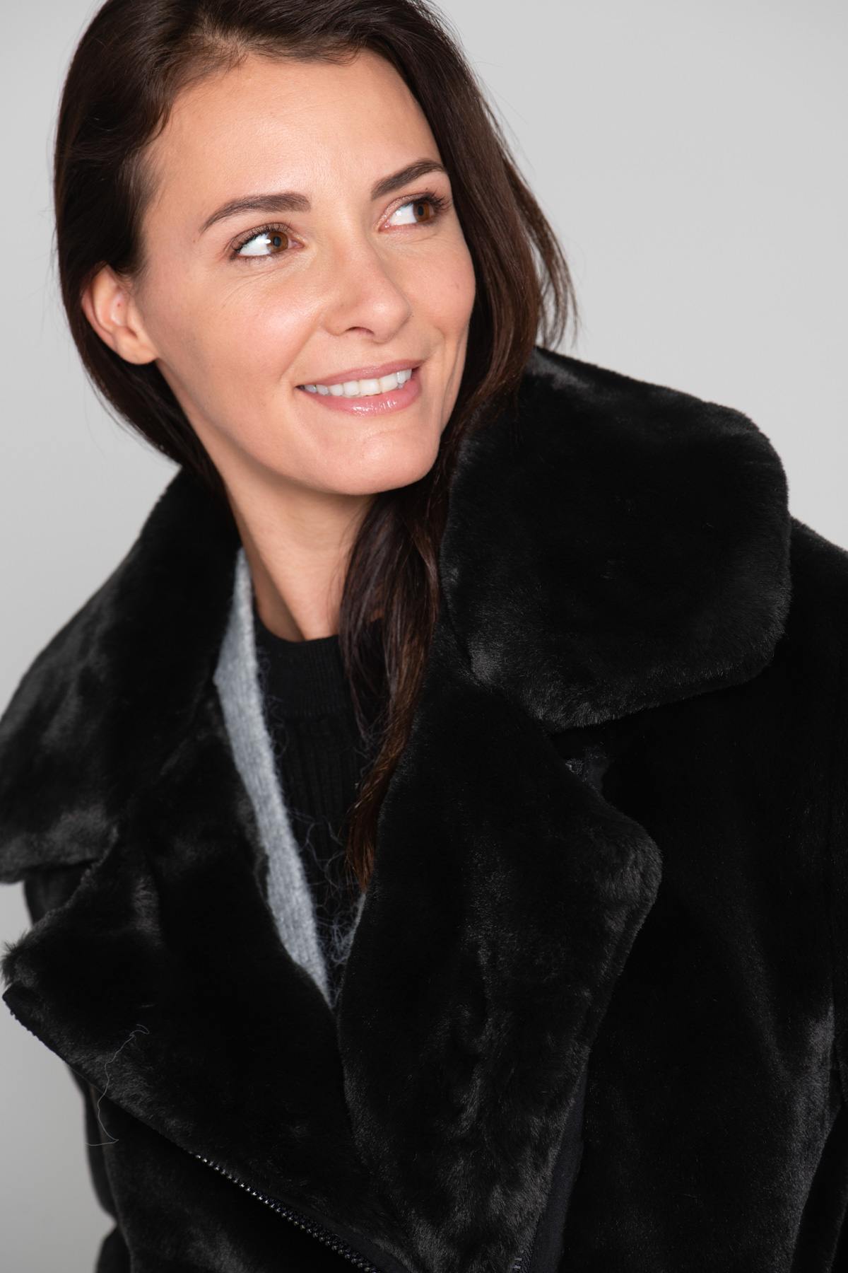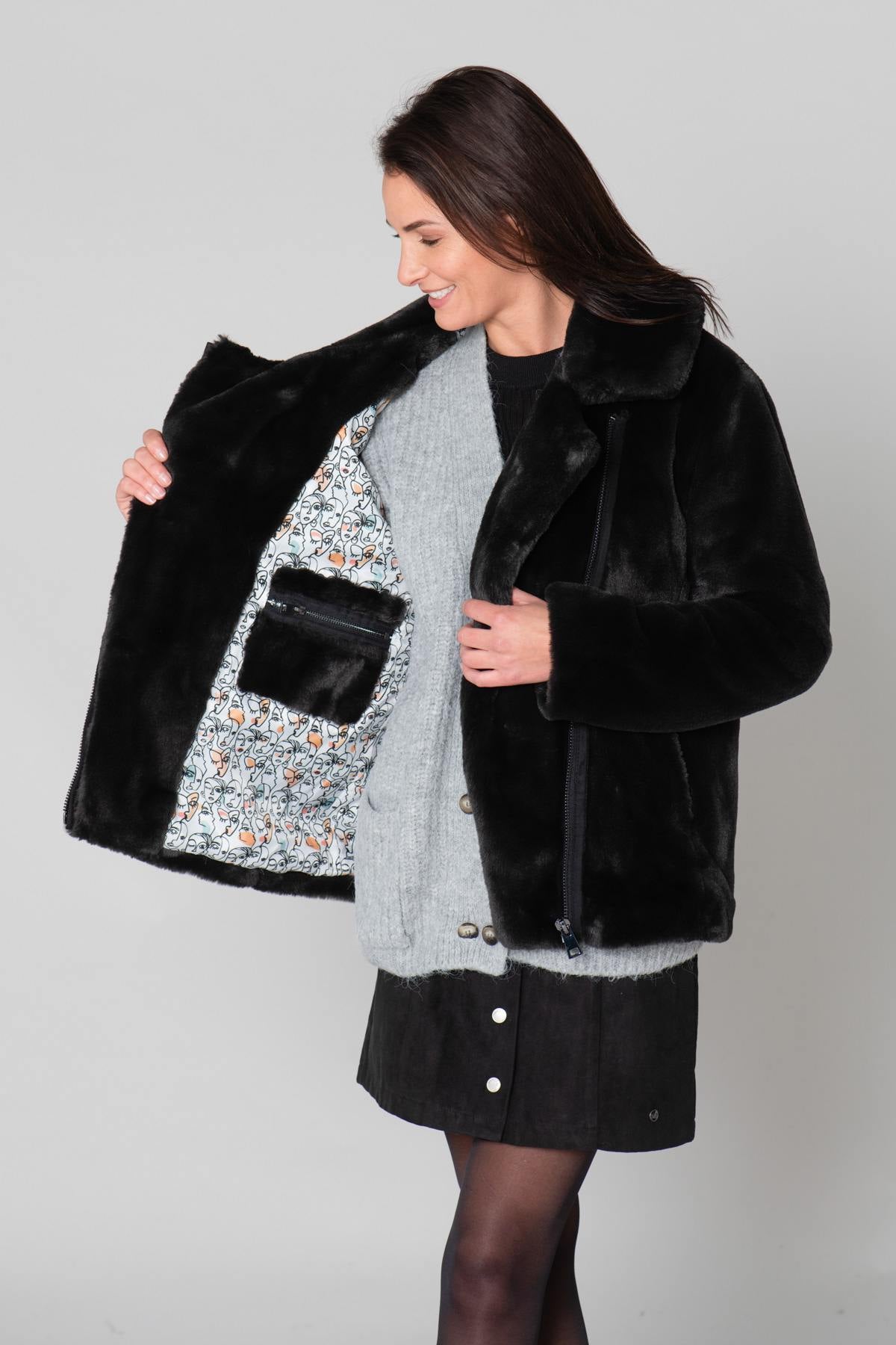 Väriltään musta, sen rakenne jäljittelee täydellisesti turkista, kun taas kaavillinen pääntie on pehmustettu. Aksiaalisena sulkijana toimiva metallinen vetoketju on sivussa edestä. ja muistuttaa perfecton sulkemista. Kaksi vetoketjullista sivutaskua, sekä toinen tasku hienossa sisävuoressa.