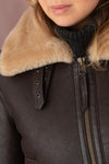 Tutustu Cityzenin Winchester Brown Beige -takkiin, joka on lentäjätyylinen naisten bomber-takki. Valmistettu ruskeasta shearlingistä, jossa on beigejä turkisyksityiskohtia, tämä takki on ihanteellinen syksyyn ja talveen tarjoten sekä lämpöä että eleganssia.
