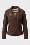 Women's brown nubuck biker jacket - Image n°1