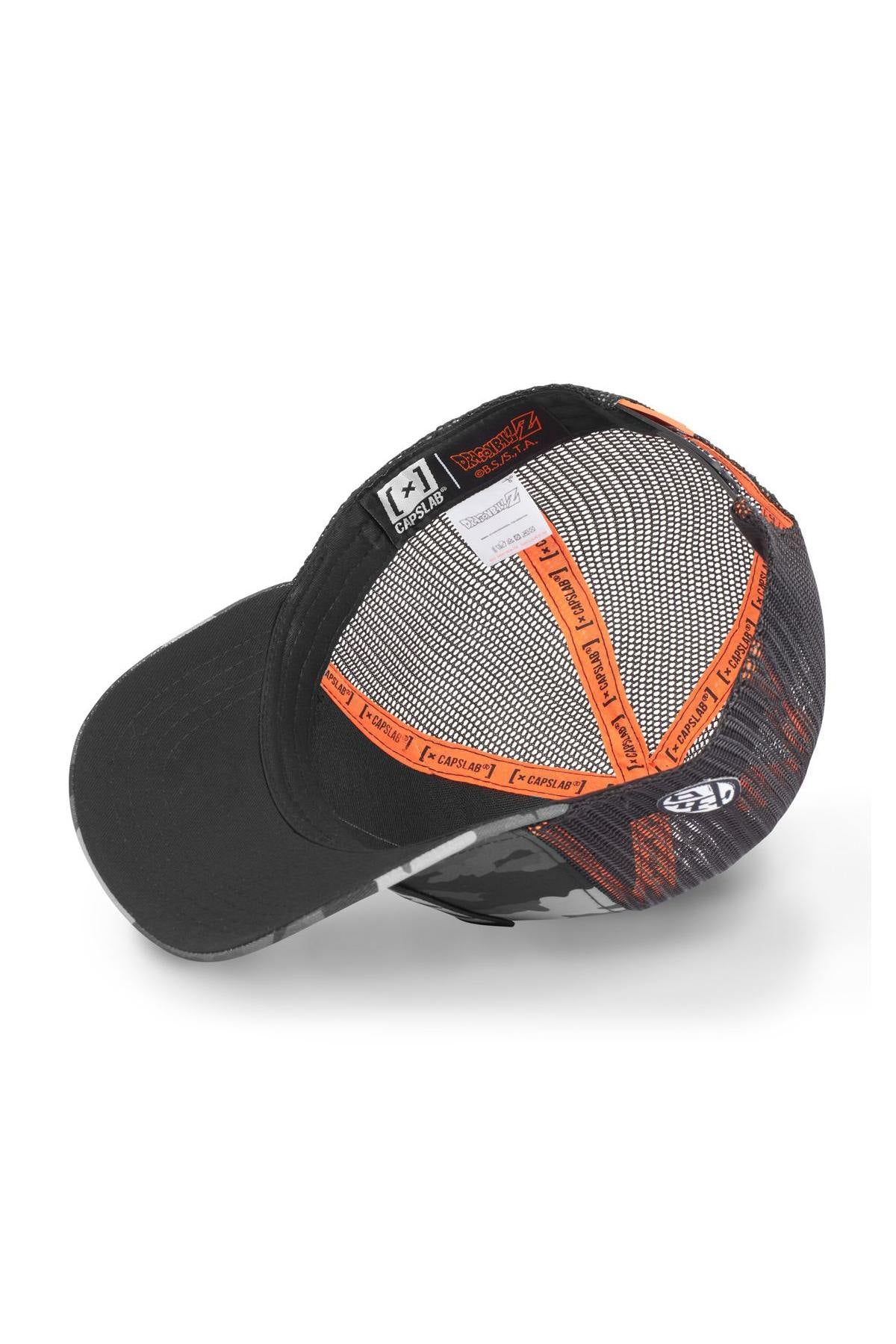 Se on säädettävissä takana ommeltulla muovisella snapbackilla. verkkokruunun takaosa. Kruunun etuosaa koristaa medaljonki, jonka keskellä on esitetty; supersankari Son Goku. Animaatiosagan Dragon Ball päähenkilö. Visiiri on hieman kaareva.