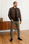 Aeronautica Militare -brändin miesten takki 222PN925PL184 BROWN on ruskeasta lehmännahasta valmistettu bomber-takki. Se on kaikkina vuodenaikoina sopiva takki. Siinä on normaali tai suora leikkaus, joka sopii kaikille vartalotyypeille.
