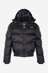 Black quilted down jacket with removable hood - Image n°1