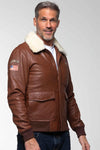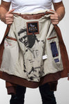 Värikontrasti vintageruskean ja beigen välillä on ylevä. Se on hillitty ja klassinen. Siinä on naisille omistettujen takkien ikoniset leikkaukset. aviation: Resorireunat hihoissa ja takana. vyötärö, 2 isoa taskua ja aito irrotettava lampaannahkainen turkiskaulus.