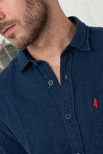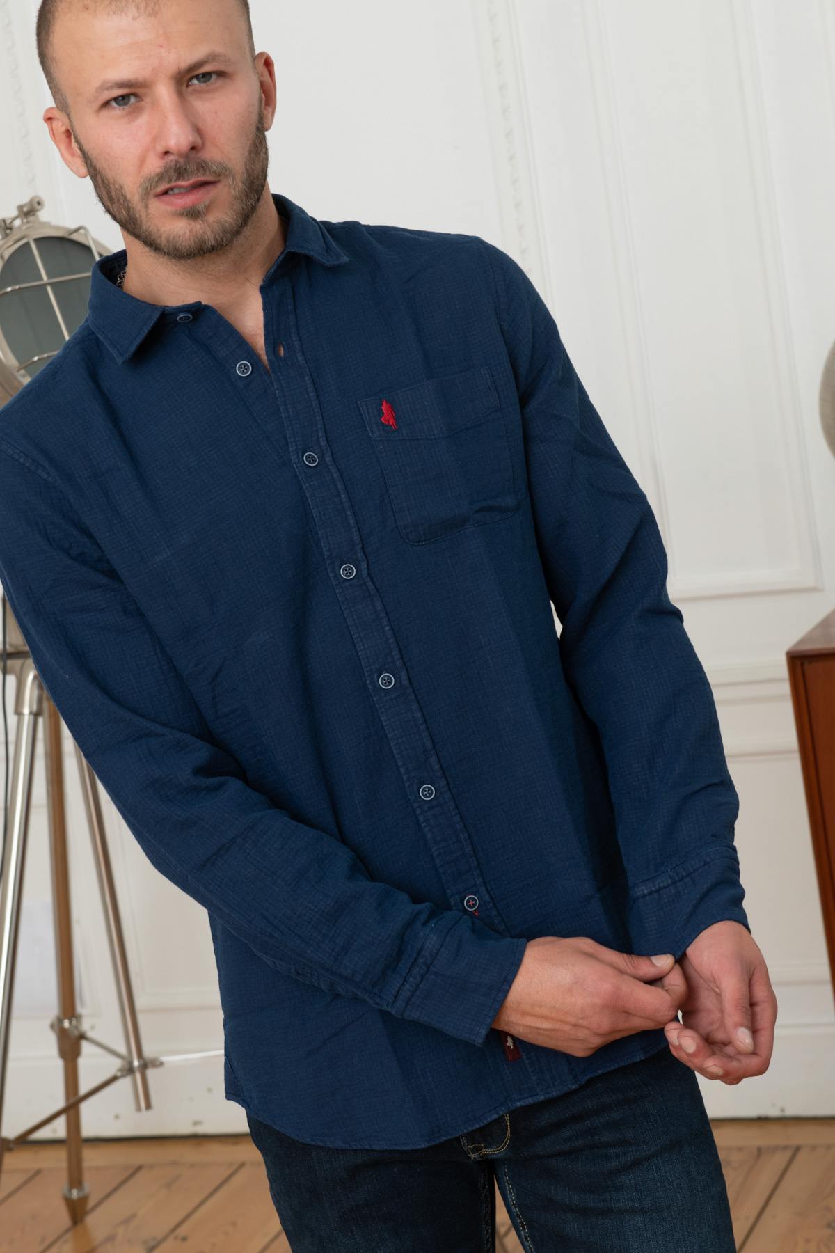 Tämä HMCHML_C018 754 INDIGO miesten paita loistaa yksinkertaisuudellaan. ja mukavuutta suoran leikkauksen ja puuvillamateriaalin ansiosta.