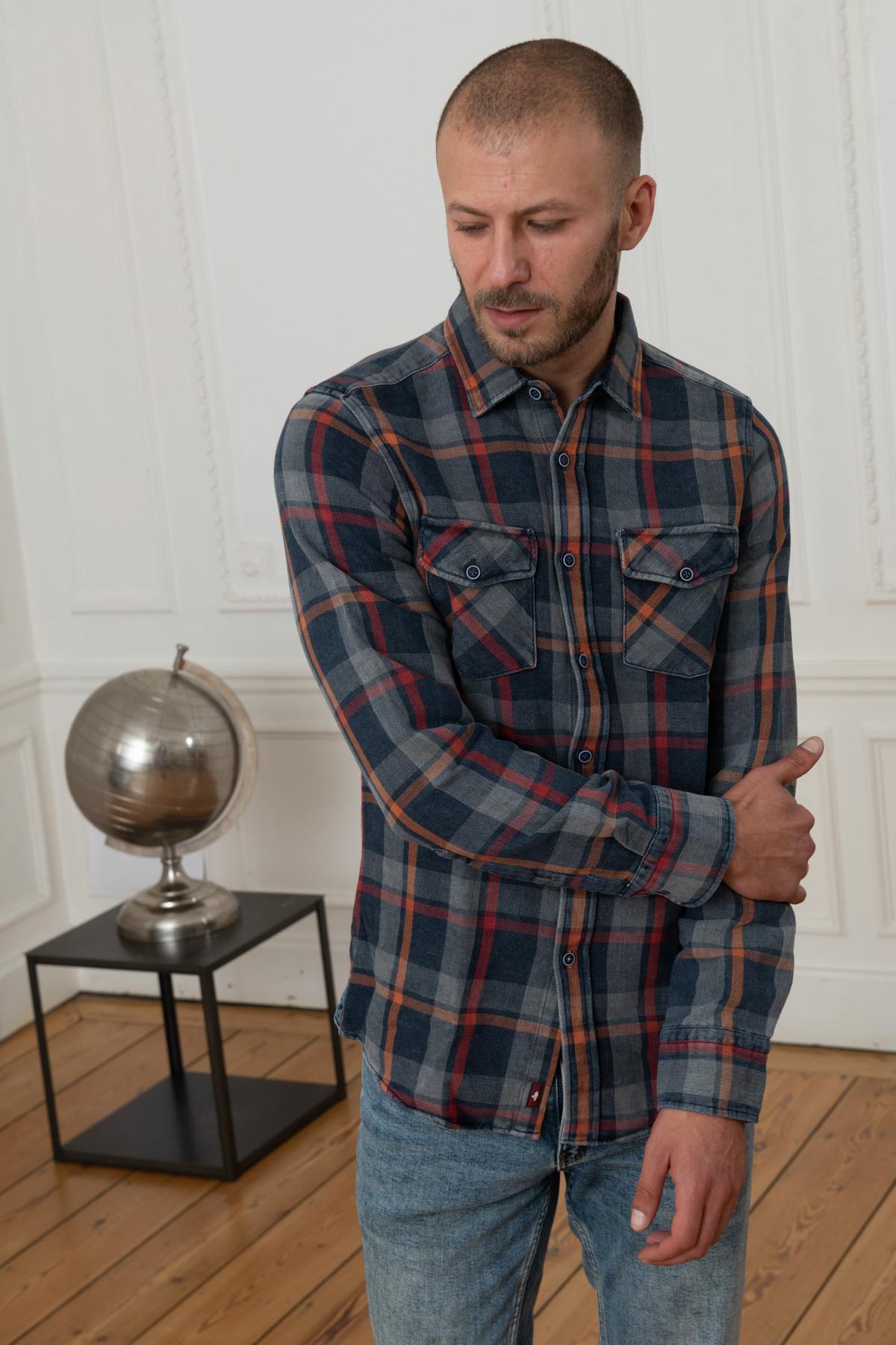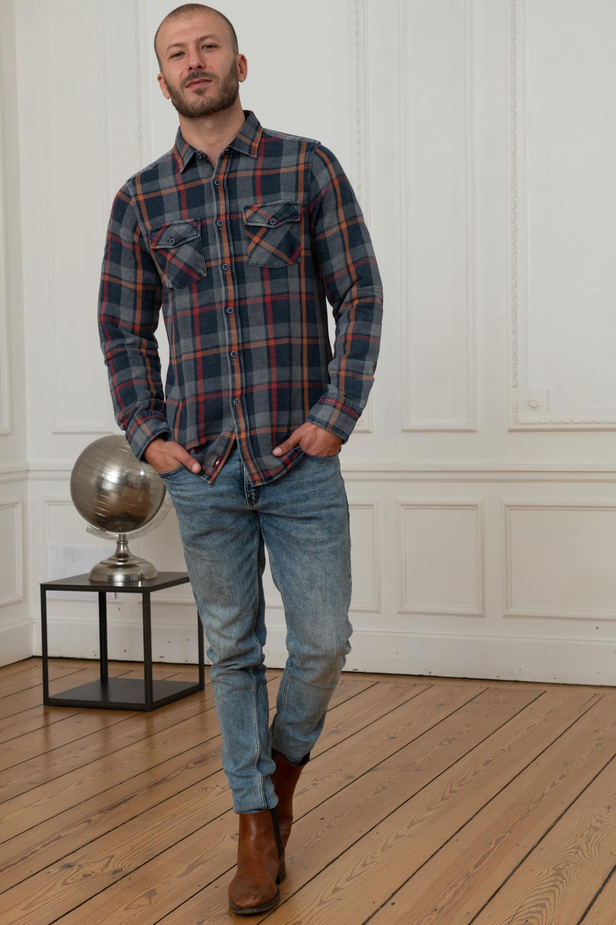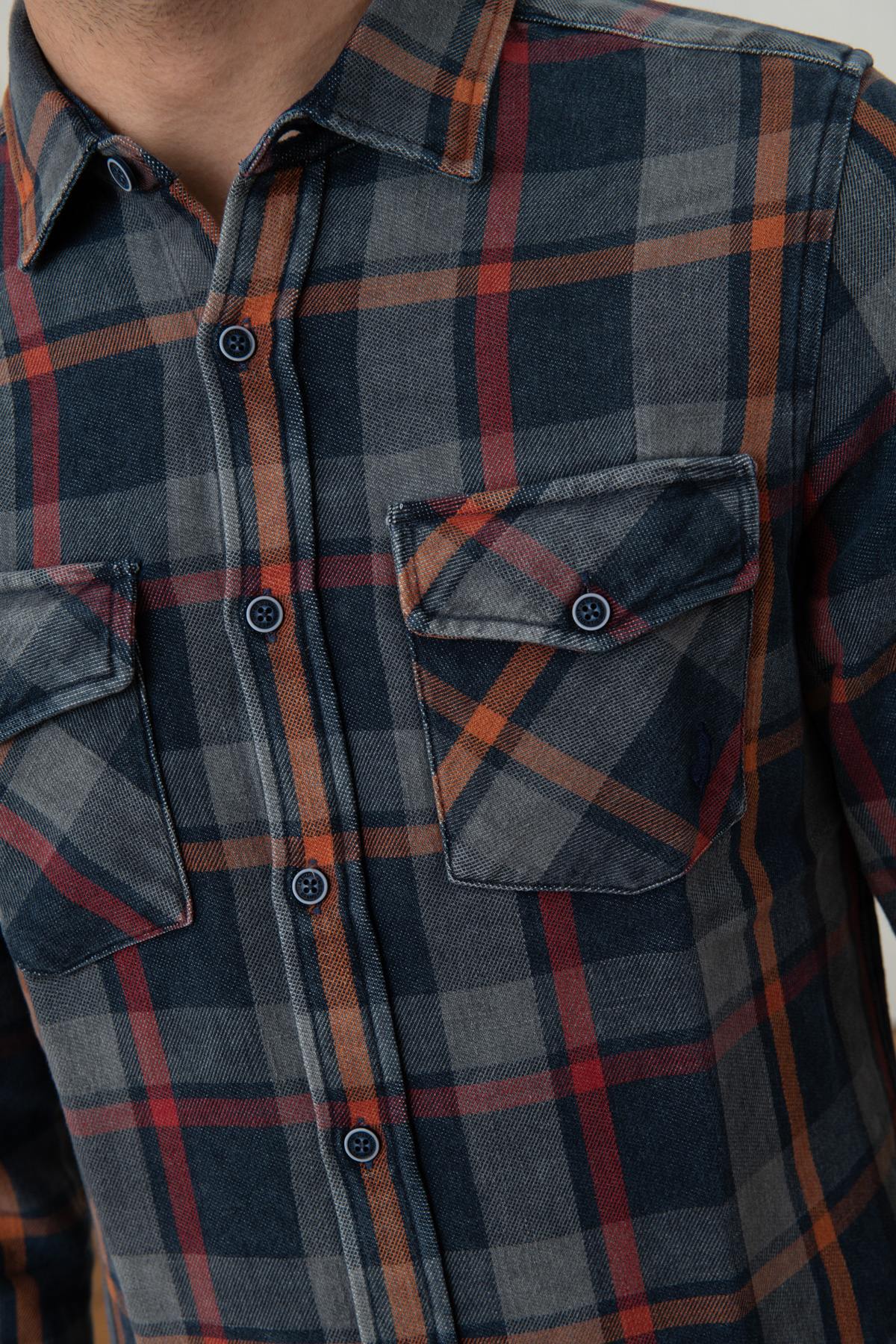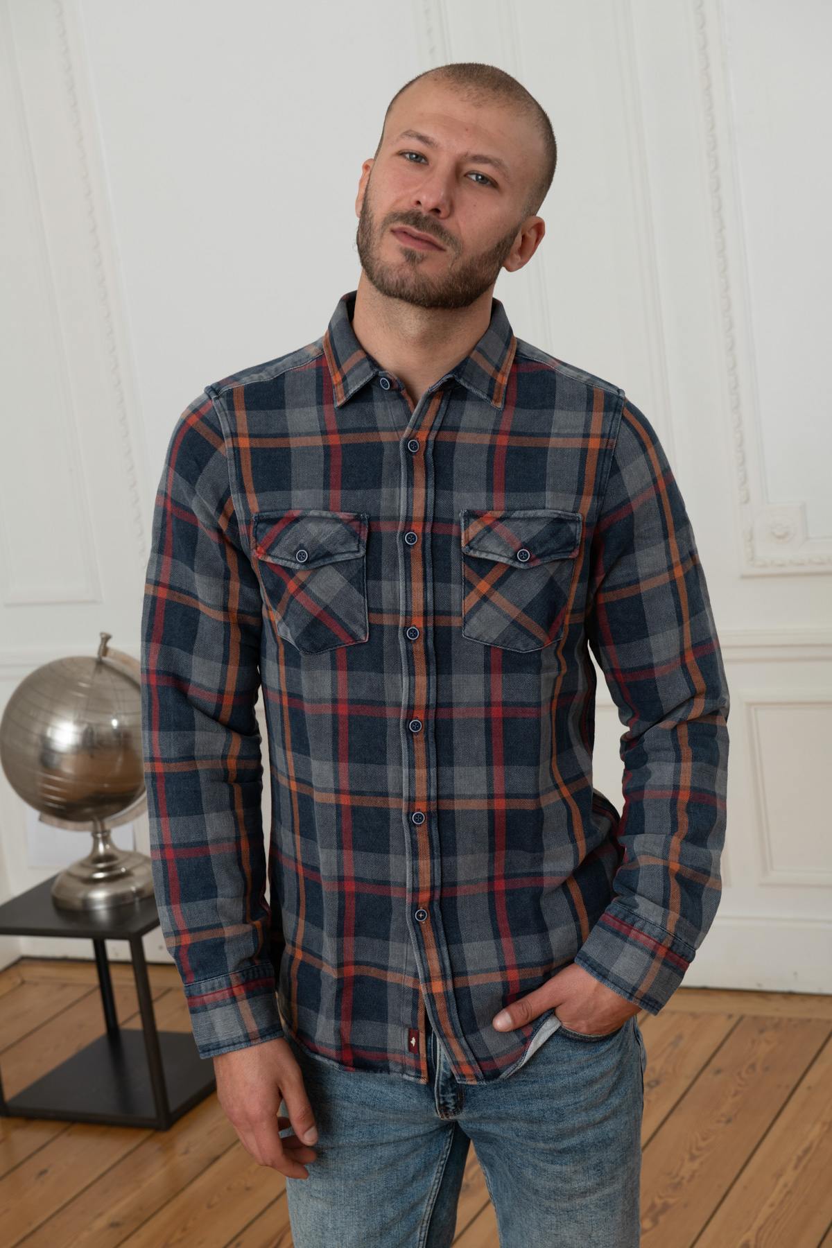 Sen kauniit kukkakuviot. laatat yhdistävät upeasti punaisen, oranssin ja tummansinisen sävyt. Sen kaksi taskua napilliset läpät rinnassa antavat sille erittäin trendikkään vintage-ilmeen. Sen painikkeet vastaavat; nappikiinnikkeen ja napin pään vastaavat. pitkät hihat.