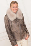Milano-malli on upea kihara öljytty takki, koristeltu nahalla. aidolla kiinteällä ketunturkiksella.