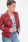 Women's Biker Jacket in shiny and waxed red leather - Image n°2
