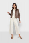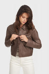 Tämä naisten takki rikkoo nykyisten standardien koodeja ja upottaa sinut luovuuden ja innovaatioiden maailmaan. Se on valmistettu aidosta lampaannahasta, ja siinä on 100 % puuvillaa oleva bodyvuori ja 100 % polyesterivuori. Sen pinta on sileä ja sen viimeistelyt on hallittu. Rakastamme mukavuusleikkausta, paidan kaulusta ja sen naisellista keskellä olevaa vetoketjua takana. napit, näkymätön sivutaskut sekä vetoketjullinen sisätasku.