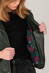 Löydä ajaton eleganssi yhdistettynä ripaukseen modernia "OLYMPE LAMB VITA KHAKI" naisten perfecto-takilla Rose Gardenista. Pala kasviparkittua lampaannahkaa, joka lupaa tyyliä ja mukavuutta kaikkina vuodenaikoina.