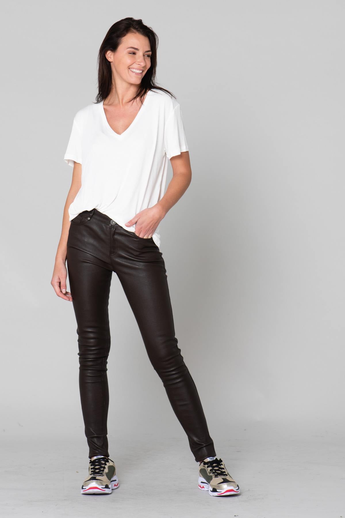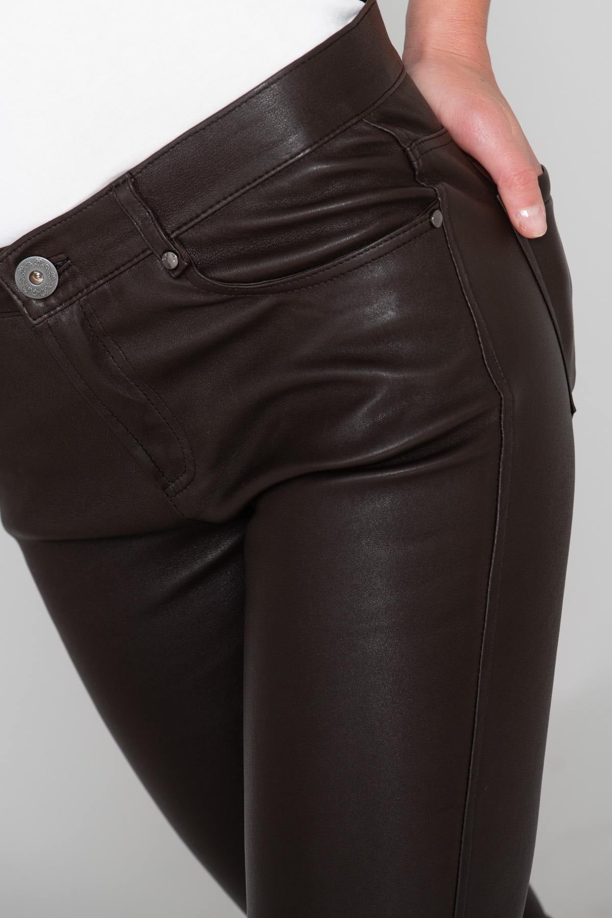 Ruskea sopii sinulle; ilahduttaa? Sitten viettelet nämä upeat Pandora 1 Choco 505 naisten housut ranskalaiselta Oakwood-brändiltä. Valmistettu mukavasta lampaannahasta, se on leikattu kokoon. pehmeä säännöllinen leikkaus, joka simuloi yhtä mukavaa joustavaa materiaalia.