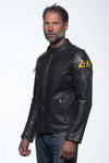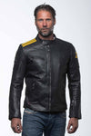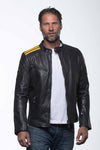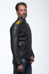 Tutustu Classic Legend Motorsin DUFF4 BLACK -pyöräilytakkiin, miesten malliin, jossa on musta lampaannahka ja biker-tyyli. Tämä kaikkiin vuodenaikoihin suunniteltu pyöreäpääntie takki erottuu joukosta tikkauksella ja olkapäällä olevilla keltaisilla nauhoilla, jotka tuovat ainutlaatuisen ja urheilullisen ilmeen.