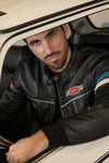 Le Mans merkkinen takki. Tämä lampaannahka on virallinen tuote, jonka tunnistaa rinnassa ja hihassa olevista laastareista.