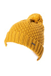 Sen neule on yksinkertaisesti kaunis ja sen pohjassa taitetussa nauhassa on pieni rautamedaljonki, jossa on merkin nimi. Tämän hatun keltainen väri korostaa sen pinnan tekstuuria.