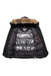 Sen mukava turkisvuorattu kiinteä huppu, joka on koristeltu aidolla pesukarhuturkiksella, joka on irrotettava vetoketjulla ja tarranauhalla, tarjoaa lisäsuojaa.
