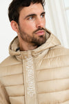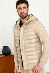Beige bi-material jacket with hood - Image n°1