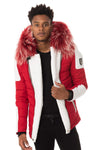 Kiinteä huppu aidolla irrotettavalla punaisella pesukarhun turkisella paineella. Toinen uusi ominaisuus on nahkainen välilehti, joka piilottaa nepparit, kun turkki on poistettu.