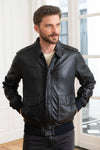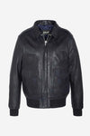 Vintage shirt collar jacket in dark blue leather - Image n°1