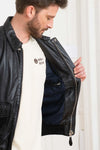 Vintage shirt collar jacket in dark blue leather - Image n°3