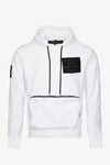 Puserossa on tyylikäs huppu, jossa on hopeanvärisillä kärjillä varustettu kiristysnyöri, joka kulkee kahden metallireiän läpi. Hihat ovat pitkät ja täydentävät urheilullisen ilmeen. Hihansuut ja vyötärö ovat oikean kokoiset. Reunat reunat. Takin etuosassa on suuri tasku, joka sulautuu trendikkään muotoiluun. ja joka suljetaan pitkällä kullanvärisellä metallivetoketjulla. Oikeaan käsivarteen on ommeltu merkki, kun taas rintaan Horspist innovoi teknisellä logolla varustetulla laastilla, joka on irrotettava tarranauhalla. On mahdotonta vastustaa samettipaneelin lämmintä brändäystä, joka paljastaa logon kohokuvioituna läpi koko pinnan.