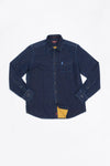 Sen laivastonsininen väri sopii helposti kaikkien asujen häihin. Sen muotoilua parantaa koko pinnalla oleva valkoinen flocked printti. Se sulkeutuu yksinkertaisella nappilistalla. Pitkät hihat sulkeutuvat myös yhteensopivilla napeilla. Rintataskussa on merkin valkoinen logo.