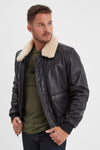 Black leather bomber jacket with sheepskin fur collar - Image n°3
